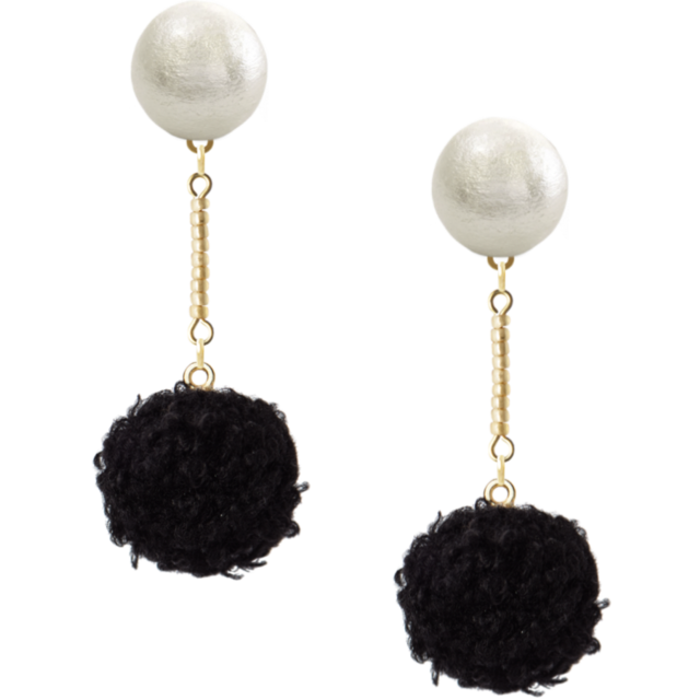 深みのあるブラックファーボールを組み合わせた、コントラストが印象的なピアス。